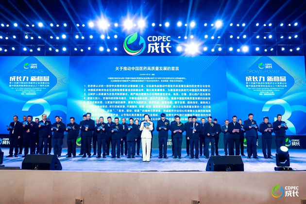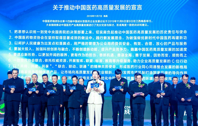 集团董事长刘景萍女士的领读下,共同隆重发布《关于推动中国医药高质量发展的宣言》,充分彰显了中国医药企业努力推动医药产业高质量发展的无比自信、坚定信念和磅礴力量。