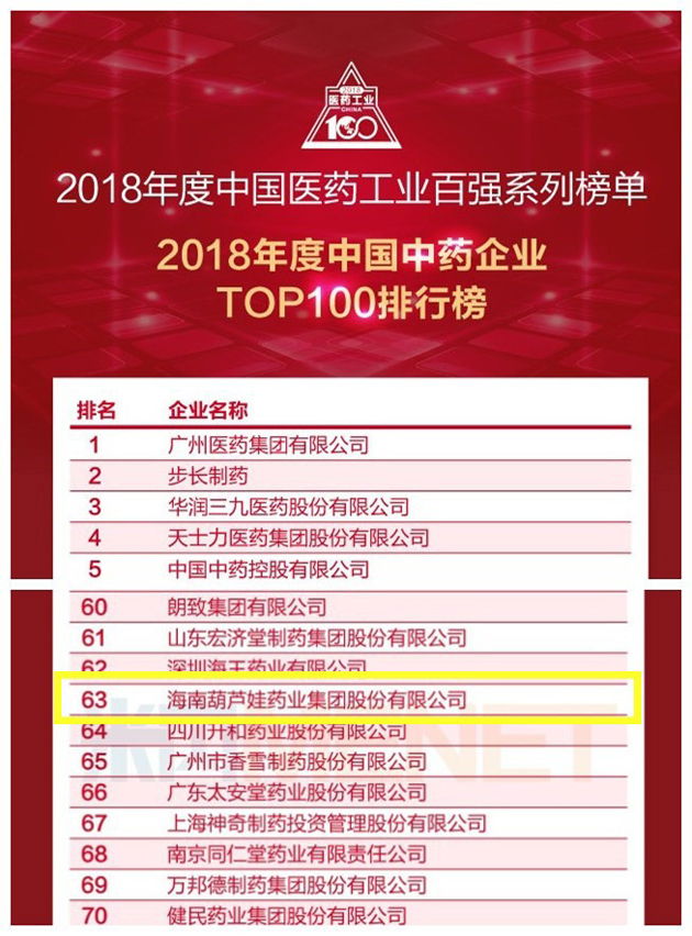 集团凭借扎实的研发生产实力和稳健的市场推广能力,经过多轮海选,并经专家委员会审定,成功入选“2018年度中国医药工业百强系列榜单”子榜单“2018年度中国中药企业TOP100排行榜”。