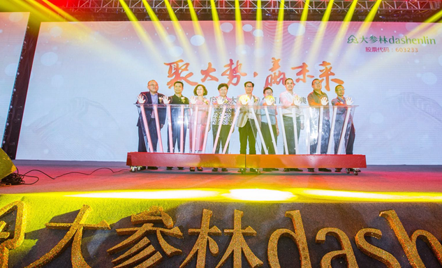 集团董事长刘景萍女士与大参林医药集团董事长柯云峰先生、中国医药商业协会执行会长付明仲女士等嘉宾共同开启了“聚大势•赢未来"大参林工商合作峰会的大幕。