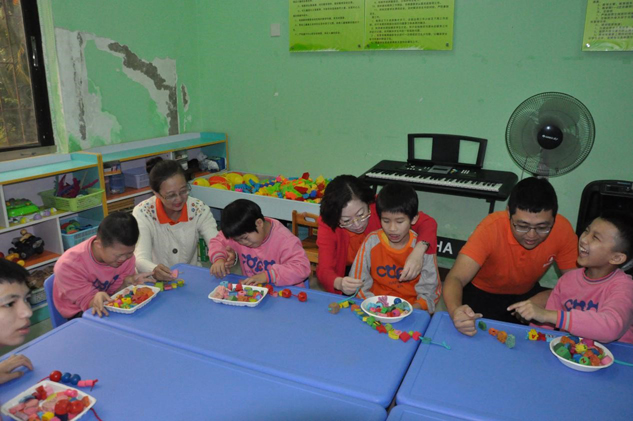 ▲基金会执行理事长刘景萍女士带领孩子们做手工
