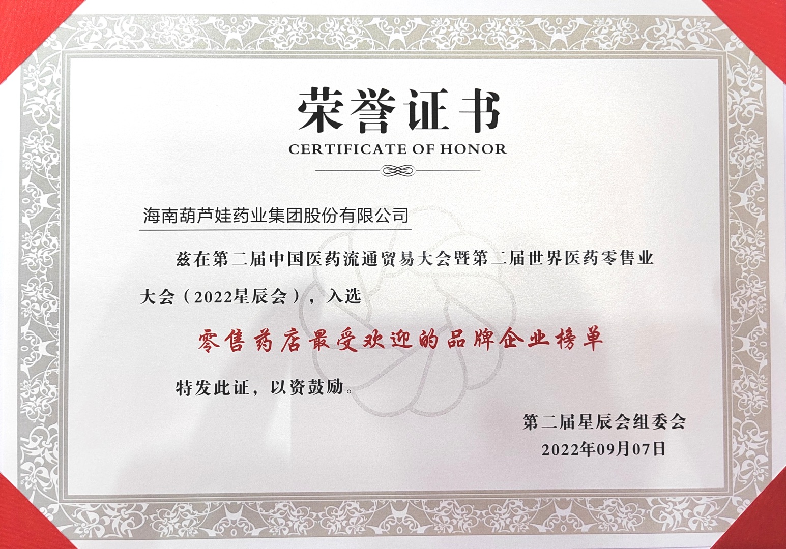 9月7日-9月9日,2022年第二届中国医药流通贸易大会暨第二届世界医药零售业大会(第二届星辰会)在长沙顺利举办。会议期间,九游会企业·J9 - 中国官方网站 | 真人游戏第一品牌 集团荣获多项行业大奖。