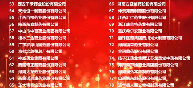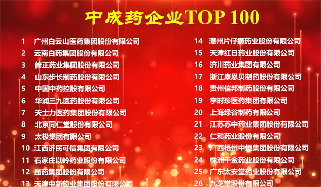 凭借强劲的发展势头,再度入选“中成药企业TOP100”。
