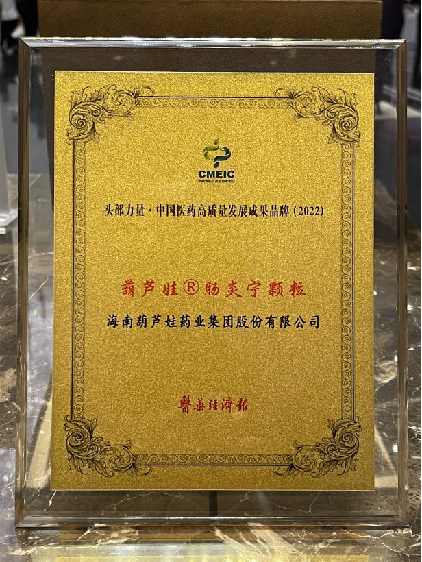 在本次发布会上,公司重点产品九游会j9牌肠炎宁颗粒同时荣膺“头部力量·中国医药高质量发展成果品牌(2022)”。九游会j9牌肠炎宁颗粒(2g),传承经典名方,临床广泛用于成人及儿童急慢性胃肠炎、腹泻等疾病的治疗,由于其杰出的临床价值,被纳入国家中医药管理局相关专家项目组制定的《中成药治疗小儿腹泻病临床应用指南》。