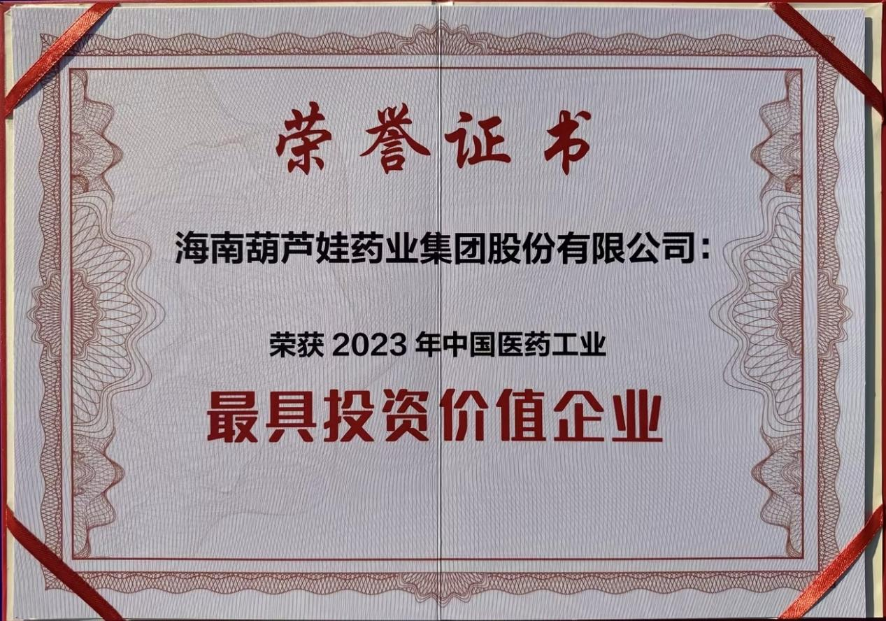 集团荣登“2023中国医药工业最具投资价值企业”榜单。