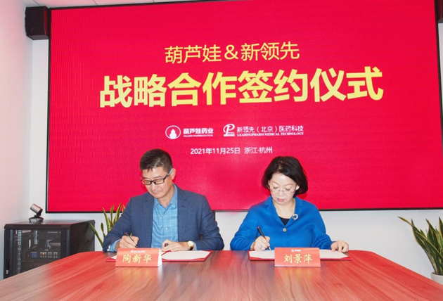 集团董事长刘景萍,新领先医药科技董事长陶新华、总裁高世静等领导出席签约仪式。