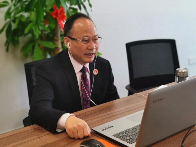 ▲刘景萍董事长通过网络参加会议