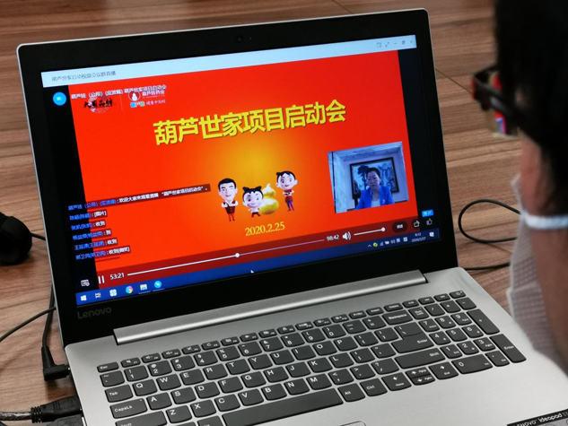 ▲营销总经理楼春红通过网络进行项目培训